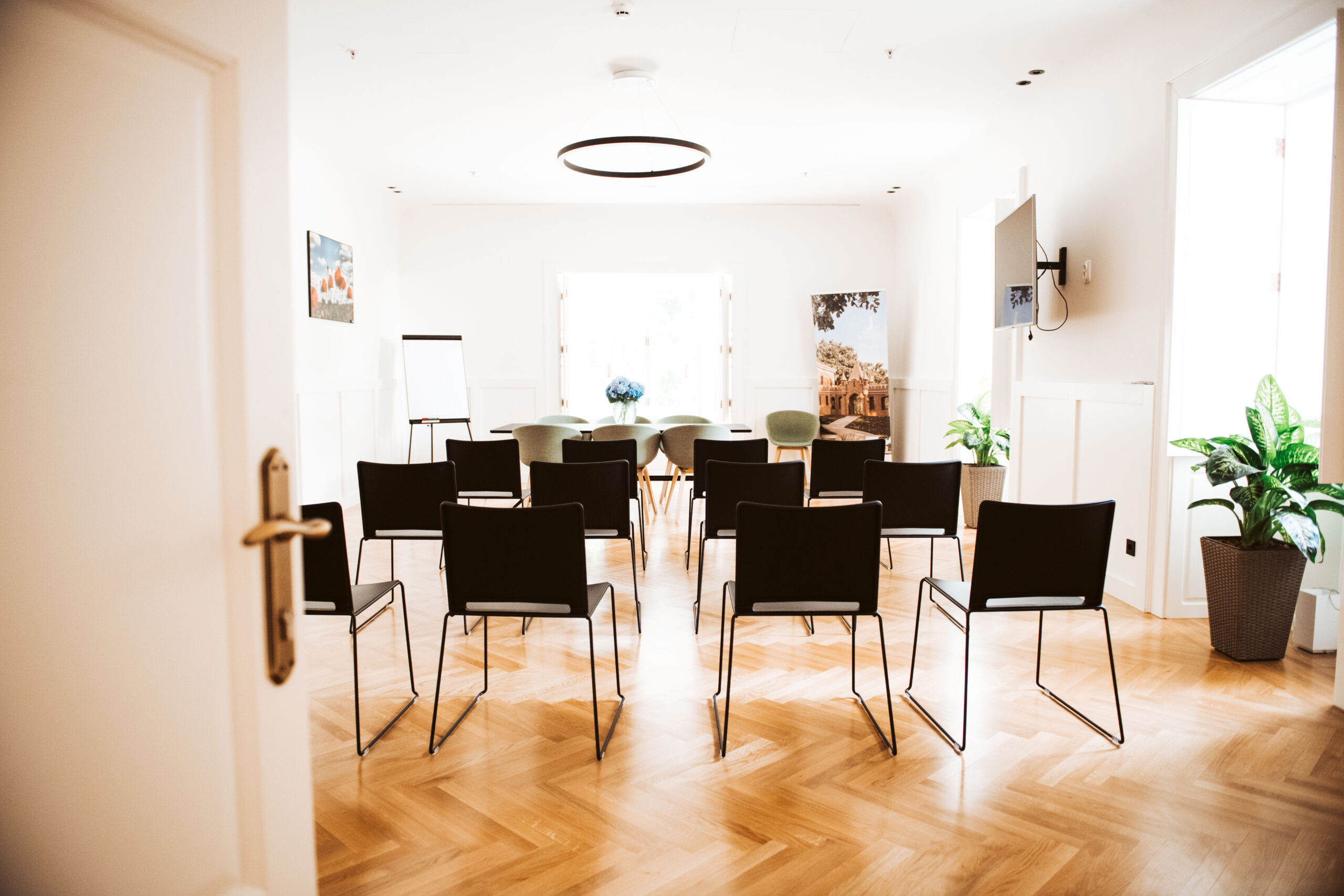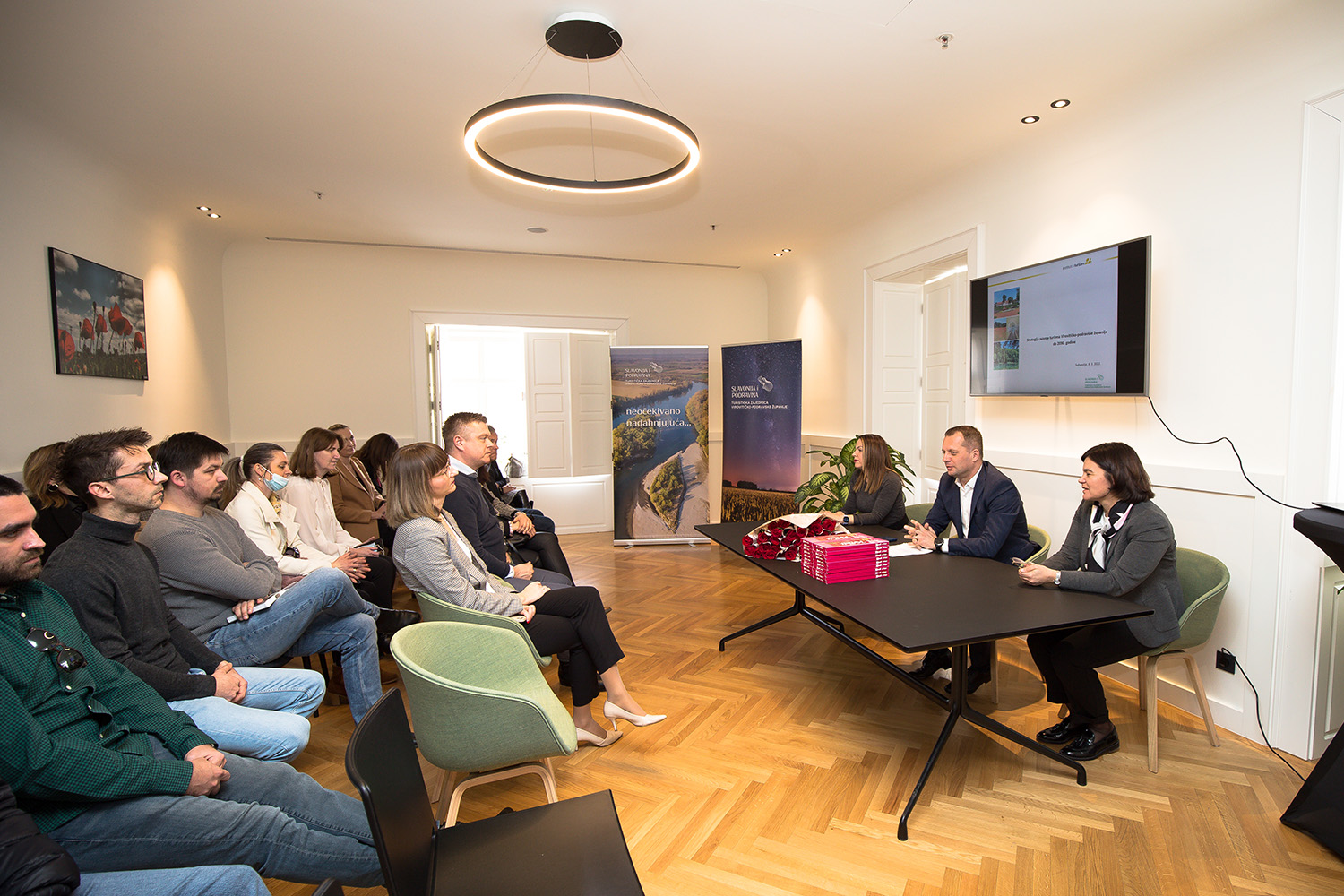 Kapacitet dvorane za 30 osoba i opremljenost sa suvremenom audio-vizualnom opremom te bežičnim internetom za poslovne susrete po Vašoj mjeri.